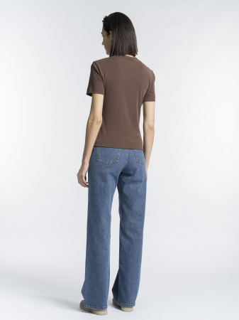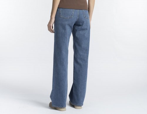 Выбрали для джинсов хлопковый деним с добавлением эластана, с легкой варкой и потертостями, что придает им индивидуальность. Брендовый патч как визуальная подпись.