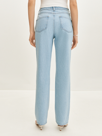 Джинсы "5-карманов" классического голубого цвета из фирменного денима на основе хлопка станут базовой вещью для вашего гардероба. Модель прямого кроя полной длины визуально вытягивает ноги и силуэт, делая его изящным и современным. Данная модель дополнят образ в стиле кэжуал с футболкой или рубашкой, для создания более сложных тотал-луков можно использовать жакеты из коллекции.