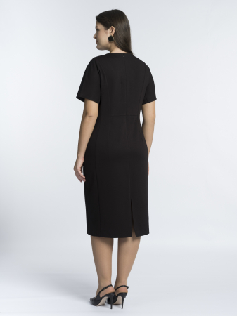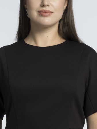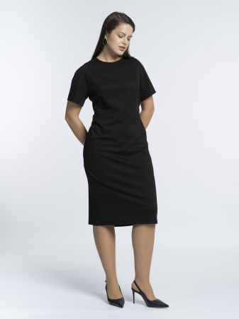 Платье-футляр — квинтэссенция стиля и функциональности, созданная для женщин, ценящих безупречный крой и эффектные детали. Его лаконичный силуэт с приталенным корпусом и круглой горловиной подчеркивает женственные изгибы фигуры, создавая элегантный и в то же время дерзкий образ, который одинаково уместен как в деловой среде, так и на вечернем мероприятии. Но главной изюминкой, превращающей это платье в настоящий must-have, становится стильная металлическая двухзамковая молния, проходящая вдоль линии спины — эта необычная деталь не только добавляет образу современный шик, но и позволяет регулировать степень открытости модели. Рельефные вытачки по груди и талии обеспечивают идеальную посадку, подчеркивая стройность силуэта и создавая эффект «второй кожи». Длина ниже колена — универсальный выбор для любого случая: она выглядит достаточно строго для важных переговоров, достаточно нарядно для коктейльной вечеринки и достаточно элегантно для романтического ужина. Короткий цельнокроеный рукав мягко обрамляет плечи, сохраняя комфорт и легкость, а классический черный цвет делает платье безусловным фаворитом гардероба — его можно дополнить как лаконичными офисными аксессуарами, так и яркими вечерними украшениями, создавая бесконечное множество образов. Вискозный трикотаж премиального качества — это идеальный баланс между комфортом и элегантностью: он прекрасно держит форму, не стесняет движений, обладает благородным матовым блеском и приятен к телу. Такой материал сохраняет безупречный вид в течение всего дня и подчеркивает статусность образа.