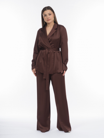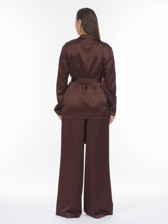 Прямые широкие брюки создали лаконичными, не усложняя дополнительными деталями. Резинка вкруговую обеспечивает комфортную посадку по талии. Брюки выполнены из высокотехнологичного полиэстера, волокна прочного, износостойкого. Спандекс в составе способствует формоустойчивости изделия. Плотная атласная ткань демонстрирует нюансные переливы света и цвета, цвет "цикорий" особенно эффектен в такой фактуре. Модель больших размеров будет востребована как офисная, школьная, повседневная, нарядная, вечерняя, праздничная.