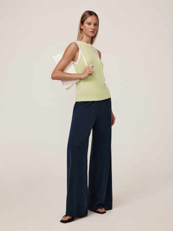 Брюки, выполненные в современном стиле smart casual, являются универсальной частью гардероба. Продуманный крой с удобной посадкой подходит для разных типов фигур, а регулируемая полнота за счет эластичной резинки обеспечивает идеальное прилегание без малейшего дискомфорта. Функциональная длина делает брюки практичным выбором для любой обуви — от элегантной классики до модных кроссовок, позволяя создавать разнообразные стилистические сочетания. Вискозный трикотаж, гармонично сочетающий лучшие свойства волокон, входящих в его состав, создан для тех, кто ценит каждую деталь: вискоза дарит невероятно приятные тактильные ощущения, полиэстер обеспечивает износостойкость, а добавление спандекса гарантирует, что модель будет эластична и формоустойчива. Этот трикотаж не просто красиво облегает фигуру, подчеркивая естественные линии, но и остается безупречным в течение всего дня — он практически не мнется, легко стирается и быстро сохнет, становясь настоящей палочкой-выручалочкой в динамичном ритме жизни. Насыщенный оттенок "синяя майолика" — произведение искусства, воплощенное в ткани. Этот глубокий кобальтово-синий цвет с фиолетовым подтоном напоминает глазурь на знаменитой керамике, привнося в образ ноты средиземноморского очарования и художественной глубины. Он говорит о вкусе своей обладательницы, ее любви к эстетике, которая не подвластна времени, и умении выделяться без лишней яркости. Блуза прекрасно дополняется брюками TR0584K в таком же цвете, в результате такого сочетания Вы выбираете практичность, которая не жертвует стилем и комфорт, который вдохновляет.