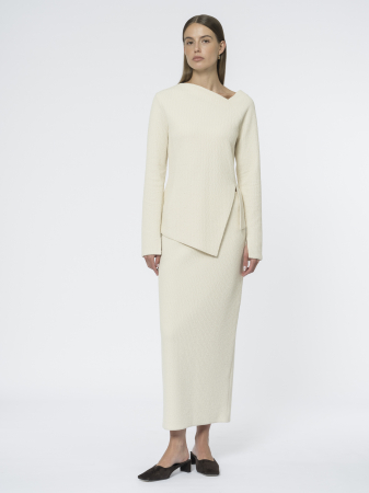 Нейтральный молочный оттенок делает модель необычной базой гардероба.