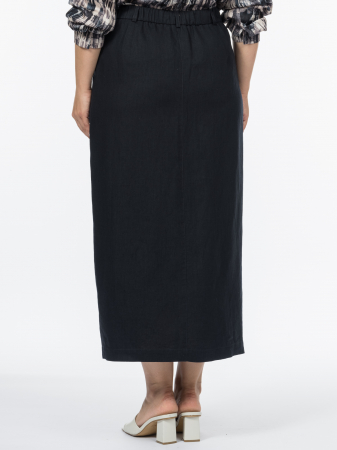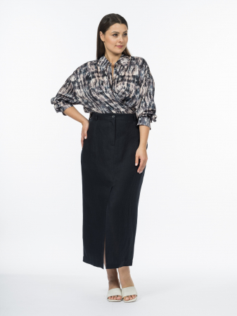 Юбка выполнена в лучших традициях кэжуальной эстетики. Прямой силуэт обеспечивает комфорт и свободу движений, подчеркивая естественные линии фигуры. Он подходит для каждого силуэта, демонстрируя аккуратный и сбалансированный крой. Притачной пояс со шлевками и резинкой по спинке мягко дисциплинирует и подчеркивает талию. Эффектная шлица спереди добавляет элемент дизайна и гарантирует уверенный шаг. Застежка-гульфик обеспечивает аккуратность и удобство при надевании, а также улучшает посадку в области живота. Модель выполнена из премиальной ткани, на 100% состоящей изо льна. Лен обеспечивает натуральность, экологичность, воздухопроницаемость и комфорт, что делает юбку приятной для носки в теплое время года. Терморегуляционные свойства такого натурального полотна поддерживают комфортную температуру тела, охлаждая или согревая в зависимости от условий. Выбранный для модели лаконичный и элегантный темно-синий цвет "вулкан" дает неограниченные возможности для создания образов самой разной стилистики.