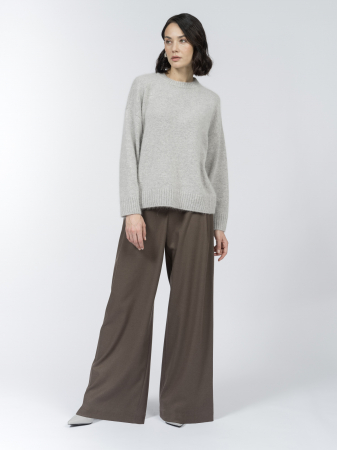 Тёплый трюфельный оттенок, напоминающий цвет выбеленного солнцем дерева, универсален — сочетается с блузами, джемперами и лонгсливами коллекции.