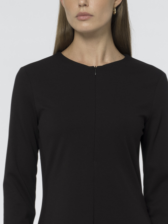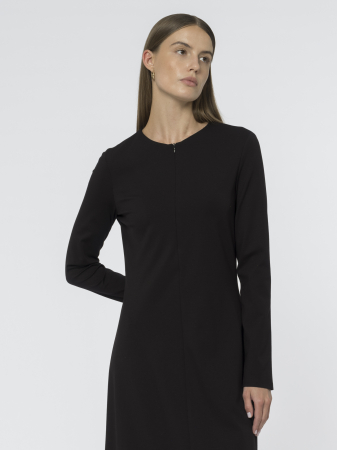 Удобная застёжка на потайной молнии спереди делает платье практичным в носке. Выполнено в классическом черном цвете, подходящем для любого случая.