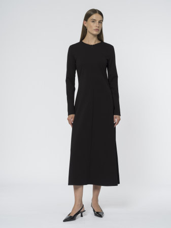 Платье лаконичного кроя - – идеальный вариант для тех, кто ценит простоту и элегантность. Классическая круглая горловина и длинные втачные рукава создают сдержанный силуэт без лишних деталей.