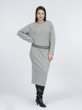 Стильный леопардовый принт в серой гамме выглядит эффектно и универсален в сочетаниях. Блуза легко сочетается с однотонными юбками и брюками, а также с юбкой SK0599K.