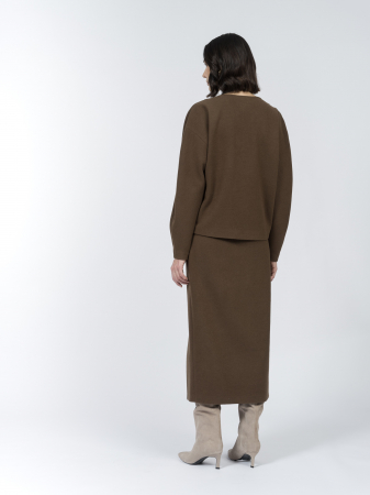 Юбка из смесового трикотажа мягко садится по фигуре и комфортна в носке. Состав ткани идеально сбалансирован: шерсть и хлопок дарят натуральный комфорт и тепло, вискоза добавляет мягкости, а полиэстер обеспечивает прочность.