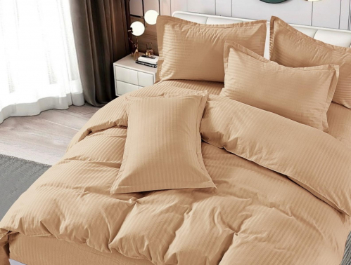 Страйп сатин – это натуральное полотно премиум-класса, представляющее собой чередование жаккардового и сатинового плетений.