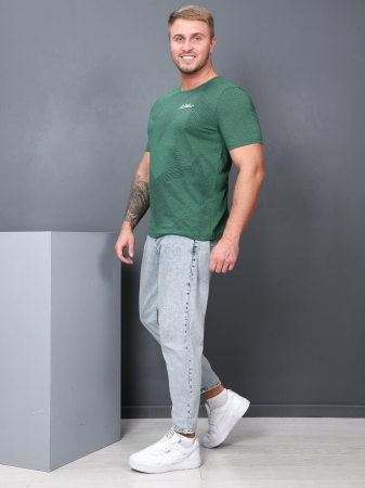 Мужская футболка выполнена их трикотажного полотна "кулирка". Футболка полу прилегающего силуэта, с рукавом, горловина с круглым вырезом, обработанным бейкой. Передняя часть футболки декорирована принтом.