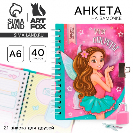 Анкета на замочке, в твердой обложке А6, 40 листов «Мои секреты» (арт. 2300170)