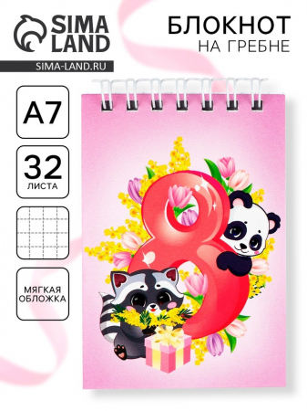 Блокноты в мягкой обложке А7, 32 л. на гребне «Самая милая. 8 марта» (арт. 10708579)
