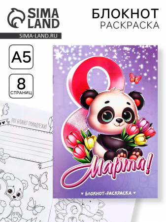 Блокнот раскраска А5, 8 страниц «Панда. 8 марта» (арт. 10724617)