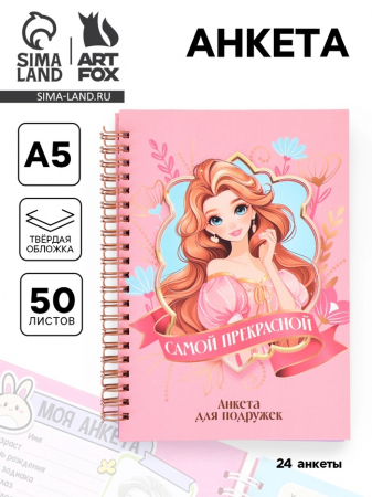 Анкета для девочки А5, 50 листов, твердая обложка «Принцесса» (арт. 10724645)