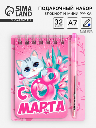 Подарочный набор, блокнот и мини-ручка, 9?10.4 см «8 Марта» (арт. 10701203)