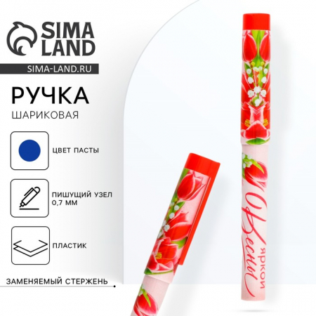 Ручка шариковая, синяя паста, 0.7 мм, пластиковый корпус с колпачком «Яркой Весны» (арт. 9785467)