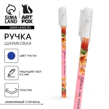 Ручка шариковая синяя паста 0.5 мм с колпачком «Цвети от счастья» пластик (арт. 9229699)