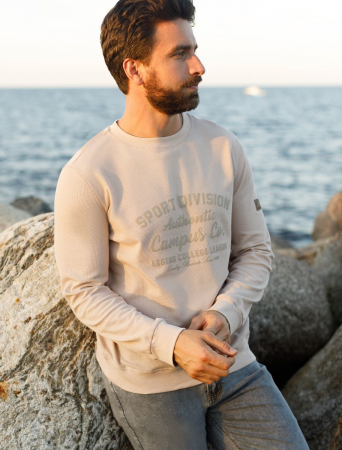Свитшот выполнен из мягкого хлопкового футера. Модель с круглой горловиной дополнена авторским принтом и нашивкой из эко-кожи с логотипом бренда. Наличие эластана в составе изделия гарантирует формоустойчивовсть и долговечность.