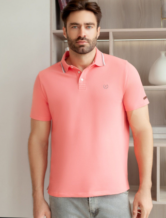 Футболка-поло выполнена из фактурного трикотажа. Модель с прямого кроя с небольшими разрезами по бокам дополнена вязаным воротником с контрастными пуговицами в тон тонкой полосы и вышитым логотипом бренда. Премиальный хлопковый трикотаж гарантирует комфорт и износостойкость. На рукаве брендированная нашивка из эко-кожи.