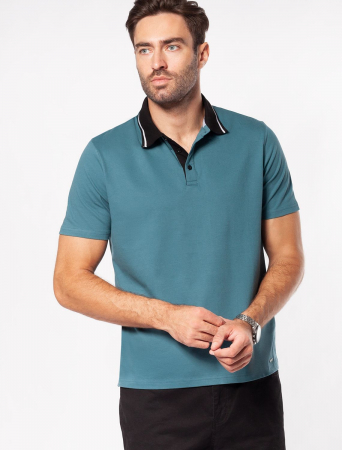 Прямое поло выполнено в оттенке полынь из премиального хлопка пике с характерной фактурой, которая обеспечивает эффективную циркуляцию воздуха. Деликатный акцент в модели выполнен в виде контрастного отложного воротника. Наличие эластана в составе изделия способствует эластичности и меньшей сминаемости. Внизу металлический логотип бренда.
