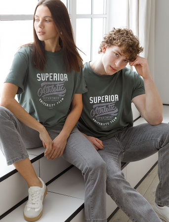 Перевод: "Лучшая студенческая команда 1989. Спортивное отделение. Великие выступления" надпись выполнена пуффом и красками с устойчивым покрытием. Футболка выполнена из премиального хлопка. Особым преимуществом является наличие эластана в составе изделия. Очень приятная на ощупь и комфортная при носке, футболка сохранит свой безупречный внешний вид в течении долгого времени. Модель дополнена нашивкой из эко-кожи с логотипом VILATTE.