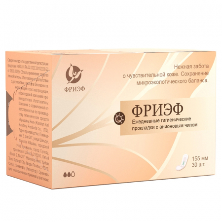 Артикул: 0231 Ежедневные гигиенические прокладки с анионовым чипом. "Фриэф", 155 мм, 30 шт купить за 121 ? в интернет-магазине "Зелёная Коробка"