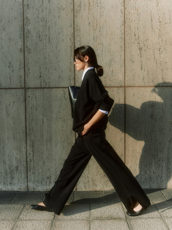 Особенности ткани: боковые разрезы по низу, стрелки по центру брюк