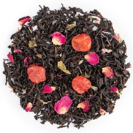 Бархатистое сочетание ананаса, листьев смородины и лепестков роз создают в сочетании со смесью черных чаев оригинальный коктейль, напоенный ароматом вишни.