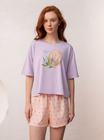 Стильная домашняя одежда от торговой марки Индефини в виде футболка с шортами, самая популярная, можно носить в любое время года. Такой вид одежды подарит комфорт и уют дома.