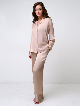 Стильная домашняя одежда от торговой марки Индефини в виде рубашки с длинным рукавом и брюками, самая популярная, можно носить в холодное время года. Такой вид одежды подарит комфорт и уют дома.