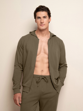 Мужская кофта с капюшоном из мягкого хлопка с добавлением полиэстера. Молния и два кармана делают модель удобной в использовании, а добавление полиэстера помогает изделию дольше сохранять форму. Подходит для дома, прогулок и отдыха.