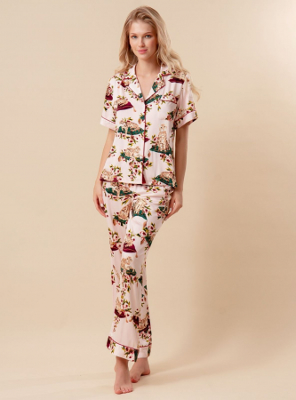 Пижама женская вискозная торговой марки Indefini. Женская пижама из вискозы розового цвета с принтом - идеальный выбор для комфортного и крепкого сна. Вискоза - натуральная ткань, которая обладает отличными дышащими свойствами и мягкостью на ощупь.Такая пижама отлично подойдет для вечернего отдыха дома и прогулок. Она обеспечит вам максимальный комфорт и приятные ощущения.Из-за своего стильного внешнего вида и приятных тактильных ощущений, эта пижама также может быть идеальным подарком для вашей подруги, сестры или мамы.