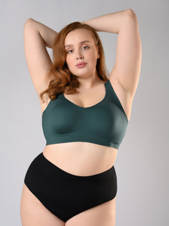 Бюстгальтер-топ из мягкого и прочного полиамида. Имеет слитные несъемные чашки — они мягко поддерживают грудь, придают комфортную фиксацию без косточек. Бесшовный бюстгальтер ощущается как «вторая кожа» и незаметен под одеждой. Широкие бретели равномерно распределяют нагрузку на плечи, застежка сзади позволяют отрегулировать посадку, а рельефные линии по бокам усиливают поддержку.