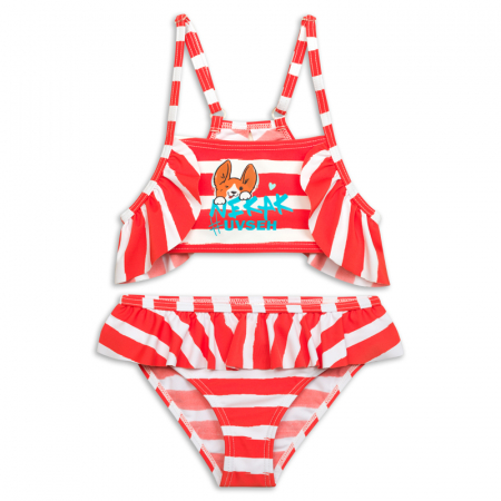 Состав: верх: 80%полиамид 20%эластан, подклад: 100%полиэстер, низ: 80%полиамид 20%эластан, подклад: 100%полиэстерОписание: Раздельный купальник для девочек. Верх топ с декоративной рюшей по проймам, лямки с регулировкой по длине. На подкладе. Регулировка по ширине завязками на спинке. Низ трусы с увеличенной высотой посадки. Рюша по верхнему краю, перед на подкладе.