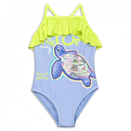 Состав: 80%полиамид 20%эластан, подклад: 100%полиэстерОписание: Слитный купальник на тонких лямках с регулировкой по длине. Перед продублирован подкладкой. Перевод принта Стремление вверх, в топ. Панцирь черепахи из двусторонних разноцветных пайеток.