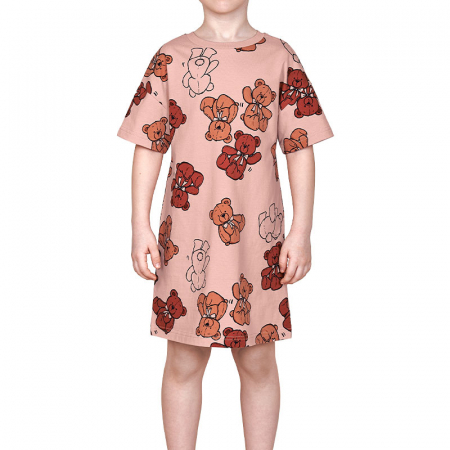 Состав: 100%хлопокОписание: Ночнушка для девочки - это самая необходимая одежда для сна в гардеребе вашего ребенка. Ночная сорочка с мультяшным принтом и коротким рукавом изготовлена в виде удлиненной футболки. Пижамная рубашка со спущенным плечом выполнена из натуральной хлопковой ткани. Содержание 100% хлопка в составе обеспечивает хорошую воздухопроницаемость и гигроскопичность. Хлопковая туника с медвежатами универсальна, в ней можно ходить дома, брать с собой в летний лагерь и детский сад. Принт эластичный и прочный, хорошо переносит частые стирки. Также ее можно надеть на пижамную вечеринку и на выход, на пляж и на дачу. Платье детское имеет свободны крой и удобный вырез горловины, позволяя сделать процесс надевания перед сном легким и непринужденным. Ночная рубашка идеальна не только для лета, но подойдет для осени, зимы и весны. Ее тонкая и легкая дышащая ткань обеспечит вашей дочке здоровый и крепкий сон. Такая милая домашняя одежда используется для повседневной носки как девочками подросткам, так и малышками в возрасте от 2 до 11 лет. Подойдет как высоким, так и низким детям. Порадуйте своего ребенка качественной и стильной одеждой от Pelican. Обратите внимание, что цвет товара на экране вашего устройства может отличаться от реального. Помните о правильном уходе за изделием: рекомендуется стирать при температуре не выше 30 °C, без предварительного замачивания, с изнанки. Это поможет сохранить качество и цвет сорочки на длительное время.