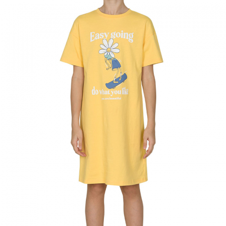 Состав: 100%хлопокОписание: Стильная и уютная ночная сорочка для девочки, модель актуального жёлтого цвета. В составе ткани 100% хлопка — идеально для детской одежды! Модель приятна на ощупь, прекрасно пропускает воздух, позволяя коже ребёнка дышать. При этом в ночной рубашке из хлопка ребёнку будет уютно, даже если он сбросит одеяло. Всё это обеспечивает комфортный и качественный сон. Сорочка для девочки свободная, плечо немного спущено, рукава широкие — в ней очень удобно спать. Отделка горловины из эластичной рибаны — она не растягивается, ребёнку удобно надевать и снимать рубашку. Домашнее платье украшает позитивный принт в виде ромашки на скейтборде. Надписи переводятся: "лёгкая на подъём", "делай то, что тебе нравится", "ты прекрасна". В линейке представлены следующие размеры: 2 (92): 3 (98): 4 (104): 5 (110): 6 (116), 7 (122): 8 (128): 9 (134): 10 (140): 11 (146). Сорочка рубашка идеальна для сна и отдыха дома — прекрасный выбор для вашего ребёнка! Ночная сорочка с принтом подходит для круглогодичного использования. Сорочка детская для девочки — замечательный подарок дочке, внучке, сестре на любой праздник. Выбирайте нужный размер по таблице размеров на фото. Цвет товара на экране вашего устройства может отличаться от цвета изделия вживую. Товар возврату и обмену не подлежит.
