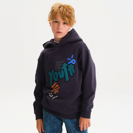 Состав: 66%хлопок 34%полиэстерОписание: Толстовка теплая из футера с начёсом для мальчика. Худи трендового умеренного объема со спущенным плечом подарит ребёнку комфорт и не будет стеснять его движений. Толстовка с капюшоном защитит от холода и ветра. Модель дополнена манжетами из эластичной рибаны по низу и рукавам. Рибана не растягивается и надолго сохраняет отличный внешний вид. Изделие неприхотливо в уходе. Толстовка на мальчика выполнена из ткани с высоким содержанием хлопка — модель приятная на ощупь, дышащая и гипоаллергенная. Благодаря полиэстеру худи износостойкое, сохраняет форму даже после множества стирок. Изделие выполнено в универсальной расцветке, легко комбинируется с любыми брюками, джинсами. Толстовка декорирована оригинальным принтом и нашивкой. Перевод: Молодость. Слишком занят созданием жизни своей мечты". Отличное худи для мальчиков дошкольного и младшего школьного возраста, а также подростков. Джемпер подходит для детского сада, прогулок, отдыха, дома. Худи с капюшоном для мальчика подходят для круглогодичной носки. Помните о правильном уходе за изделием: рекомендуется стирать при температуре не выше 30 °C, без предварительного замачивания, с изнанки. Это поможет сохранить качество и цвет толстовки на длительное время. Не забывайте о выборе правильного размера. Используйте таблицу размеров на фотографии, чтобы выбрать подходящий вариант для вашего мальчика. Обратите внимание, что цвет товара на экране вашего устройства может отличаться от реального.