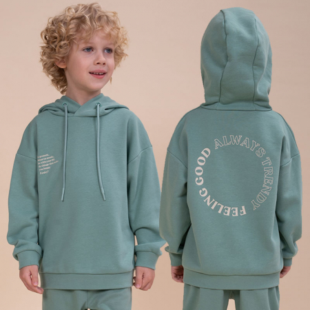 Состав: 87%хлопок 13%полиэстерОписание: Стильное худи для мальчика из мягкого футера-петля без начёса — удобная толстовка с капюшоном и утяжками, без карманов. Модель свободного кроя, умеренный оверсайз, не сковывает движения и обеспечивает комфорт на каждый день. Ткань плотная, дышащая, приятная к телу, не теряет форму после стирок. Спереди надпись «Be present, listen to music, be with you BF, do things that make you happy #enjoy!» — «Живи в моменте, слушай музыку, встречайся с другом, делай то, что делает тебя счастливым #наслаждайся!». На спинке — «Feeling good always trendy» — «Хорошее настроение — всегда в тренде!». Кофта спортивного стиля подойдёт для прогулок и отдыха. Универсальная модель на рост 92–146 см — комфорт, стиль и свобода движений!