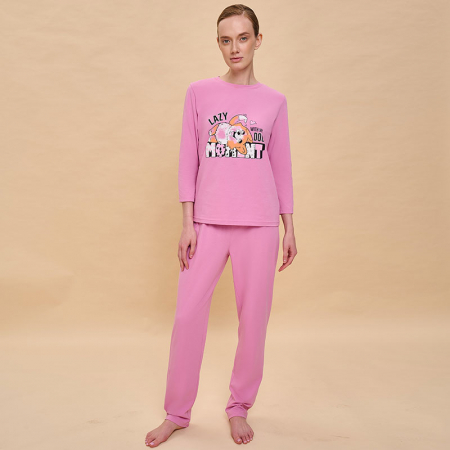 Состав: верх: 95%хлопок 5%эластан, низ: 95%хлопок 5%эластанОписание: Погрузитесь в мягкость и комфорт с коллекцией женских пижам Pelican! Пижамный костюм из премиального хлопка создан для тех, кто ценит качество, стиль и удобство даже в домашней обстановке. Модный лонгслив – женственная футболка прямого кроя среднего объема с оригинальным принтом в виде собачки корги, надпись переводится: «Ленивый момент с моей собакой». Трикотажные брюки – удобные штаны на мягкой резинке, с широкими манжетами внизу для идеальной посадки. Дышащая ткань – обеспечивает максимальный комфорт и свободу движений. Эластичный и прочный принт – сохраняет насыщенность после множества стирок. Пижама женская подходит для любого сезона. Легкий трикотаж дарит комфорт как летом, так и в прохладное время года. Просторный крой домашнего костюма женского идеален для отдыха, сна, пижамной вечеринки или расслабленных вечеров дома. Универсальный размерный ряд подходит женщинам и девушкам. Идеальный хлопковый домашний костюм для сна, отдыха и приятных вечеров.