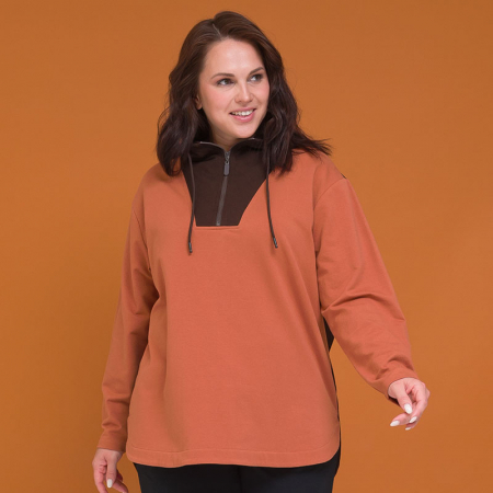 Состав: 95%хлопок 5%эластанОписание: Лонгслив женский Pelican. Модель с капюшоном, свободного силуэта, на коротком зип замке, объемная удлиненная по спинке с круглыми разрезами, с длинными рукавами. В составе ткани качественный хлопок и эластан, поэтому изделие хорошо дышит, мягкое и легкое, долго сохраняет форму даже после множества стирок, эластичное и износостойкое, практичное для регулярного применения. Материал приятный для соприкосновения с кожей. Красивая нарядная одежда для женщин представлена в популярном цвете: коричневый (оранжевый). В широкой сетке маленьких, средних и больших размеров: 52, 54, 56, 58 (XXL, 3XL, 4XL, 5XL). Универсальный тип ростовки для высоких, среднего роста и низких. Классно сочетается с различными предметами гардероба: брюки и штаны, джинсы и леггинсы, куртка и парка. Подберите комплект в официальном каталоге селлера. Иногда такой тип одежды называют оверсайз толстовка, худи, свитшот, блейзер, джемпер, так как изделие обладает похожими свойствами. Подходит для кругологодичного применения: летом, зимой, весной, осенью (демисезон и в межсезонье). Одинаково практично для повседневной носки, в домашних условиях, для занятий фитнесом и йогой, гимнастикой и танцами, бегом, спортом, для активного отдыха и прогулок на велосипеде. Можно пойти на свидание или встречу с друзьями, а можно гулять по пляжу, чувствуя легкий ветерок, путешествовать и танцевать в клубе до упаду. В таком ты понимаешь - это твое, это топ! Девушка будет в восторге от молодежной вещи, ведь это базовая модель в гардеробе. Изделие дарят сами себе женщины (или друг другу, например, сестра или мама может вручить такой подарок), а также их мужчины на День рождения, 8 марта, Новый год и Рождество, на 14 февраля.