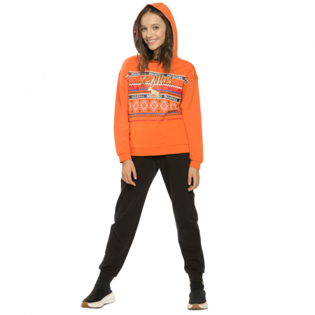 Состав: верх: 96%хлопок 4%эластан, низ: 96%хлопок 4%эластанОписание: Костюм для девочки Pelican. В наборе 2 вещи: кофта и брюки. Худи из футера оверсайз силуэта. Капюшон изнутри отделан декоративной тесьмой с вытканным рисунком, перевод Рождество. Линия плеча спущена, манжеты по низу рукавов и изделия из основной ткани. Rubber принт с золотом и глиттером. Перевод Волшебное Рождество. Штаны из футера умеренного объема с манжетами и поясом из основной ткани, карманы в боковых швах. В составе ткани качественный хлопок и эластан, поэтому изделие хорошо пропускает воздух, легкое и мягкое, долго сохраняет форму даже после множества стирок, эластичное и износостойкое, практичное для регулярного применения. Материал приятный для соприкосновения с кожей. Красивая нарядная детская одежда для девочек представлена в популярном цвете: оранжевый. В широкой сетке маленьких, средних и больших размеров: 116, 122, 128, 134, 140, 146 на возраст 6, 7, 8, 9, 10, 11 лет. То есть, подойдет малышам и подросткам. Универсальный тип ростовки для высоких, среднего роста и низких. Классно сочетается с различными предметами гардероба ребёнка. Вы можете подобрать комплект в официальном каталоге селлера. Иногда такой тип одежды называют пижамой, кофтой и штанами, толстовкой и брюками, свитшотом и поддевой (трико), так как изделие обладает похожими свойствами. Подходит для кругологодичного применения: летом, зимой, весной, осенью (демисезон и в межсезонье). Одинаково практично для повседневной носки, в домашних условиях и для сна, для занятий спортом и фитнесом, путешествий и туризма, во время активных игр, прогулок с друзьями и родителями, для хобби (волейбол, баскетбол, бег, велосипед) и танцев. В таком ты понимаешь - это твое, это топ! Можно подарить дочери и внучке на День рождения, 8 марта, Новый год и Рождество. Ребёнок будет в восторге от популярной молодежной вещи!