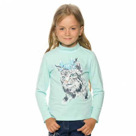 Состав: 95%хлопок 5%эластанОписание: Классическая водолазка для девочек с НОВЫМ укороченным воротником-стойкой, принт с мерцающей сахарной посыпкой.