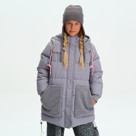 Состав: 100%полиэстер+мембрана, подклад: 100%полиэстер, утеплитель: синтепух 100%полиэстерОписание: Куртка зимняя для девочки — стильный и надёжный пуховик, созданный для морозов до ?30 °C. Размерная линейка от 98 см (?3 года) до 164 см (?14 лет) делает модель универсальной: подойдёт малышкам, школьницам и подросткам. Куртка выполнена в актуальном сером цвете. Это универсальное решение: оттенок легко сочетается с любой обувью и аксессуарами, не маркий и практичный для повседневной носки. Для родителей — это гарантия, что вещь останется аккуратной дольше, а для девочек — возможность создавать разные образы с одной верхней одеждой. Особое внимание стоит уделить розовым шнуркам на капюшоне. Яркая деталь гармонично контрастирует с серым цветом и делает куртку необычной, модной и узнаваемой. Такое сочетание выглядит свежо и стильно: практичный серый остаётся базой, а акцентные шнурки добавляют настроение и подчеркивают индивидуальность. Силуэт прямой, свободный оверсайз, удлинённый до середины бедра. Центральная тракторная молния имеет защиту подбородка и надёжную ветрозащитную планку. Капюшон анатомической формы регулируется шнуром, глубина рассчитана под объёмную шапку, форма уступов держит линию, защищая лицо и шею от ветра. Внутри — утеплитель экопух, равномерно распределённый по камерам. Он лёгкий, но тёплый, сохраняет тепло даже в сильный мороз. Подклад многозональный: мягкий флис в верхней части и полиэстер в рукавах и по низу. Это даёт уют и лёгкость движения. Куртка дополнена трикотажными манжетами, утяжками по низу и светоотражающими элементами, повышающими безопасность ребёнка в тёмное время суток. Прочные швы и износостойкая ткань с водоотталкивающей пропиткой делают её практичной для активных игр, прогулок и школы. Эта серая зимняя куртка для девочек с розовыми шнурками — сочетание практичности, душевного стиля и модного акцента. Она станет любимой вещью в гардеробе и понравится как детям, так и родителям.