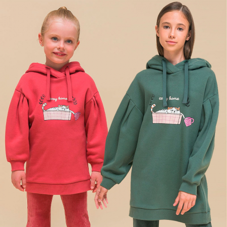 Состав: 72%хлопок 28%полиэстерОписание: Худи детское удлиненное для девочки. Туника актуального оверсайз-силуэта со спущенным плечом подарит ребёнку комфорт и свободу движения. На рукавах красивые глубокие складки. Объёмные рукава — один из модных трендов сезона. По низу изделия и низу рукавов манжеты из эластичной рибаны (ткань в рубчик), они не растягиваются и сохраняют форму и отличный внешний вид надолго. Капюшон с двумя швами, что обеспечивает анатомически правильную форму и комфортную посадку по голове. Объём капюшона регулируется тесьмой, продетой в крупные люверсы. Капюшон двойной - швы не видно. Худи оверсайз с принтом на груди. Принт эластичный и прочный, без проблем переносит частые стирки. Милый принт изображает котика в корзине с чашкой, надпись переводится: «уютный дом». Худи для девочек неприхотливо в уходе. В составе ткани преобладает высококачественный хлопок — толстовка мягкая и прекрасно пропускает воздух, давая коже ребёнка дышать. Благодаря полиэстеру изделие легко стирается и быстро сохнет, сохраняет первозданную форму надолго. Туника представлена в двух трендовых цветах: красный и зелёный (оттенок хаки). Худи утеплённое подходит для девочек дошкольного и младшего школьного возраста, а также девочек-подростков. Идеально для детского сада, прогулок, активного отдыха, дома. Худи с капюшоном можно носить круглый год: прохладным летом, осенью и весной (демисезон), зимой. Стильный и практичный подарок дочери, внучке или сестре на День рождения и любой другой праздник.