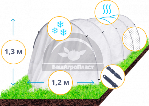 Высота парника 1,2 метра позволит Вам комфортно и без усилий полить и прополоть Ваши растения! Вам больше не придется поддерживать материал рукой, за Вас все сделают специальные клипсы.