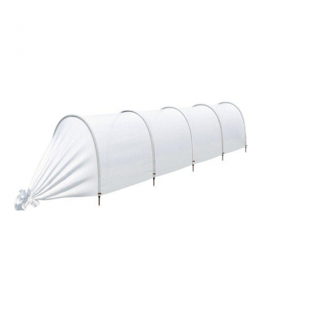 Основа парника — укрывной материал «Агротекс-42» (ширина — 2,1 м). Он имитирует тропический микроклимат, выдерживает слой снега и не повреждает всходов. Его можно использовать на протяжении нескольких сезонов. С помощью такого «одеяла» вы укроете даже самые нежные ростки. Сельскохозяйственные культуры под ним созревают быстрее.