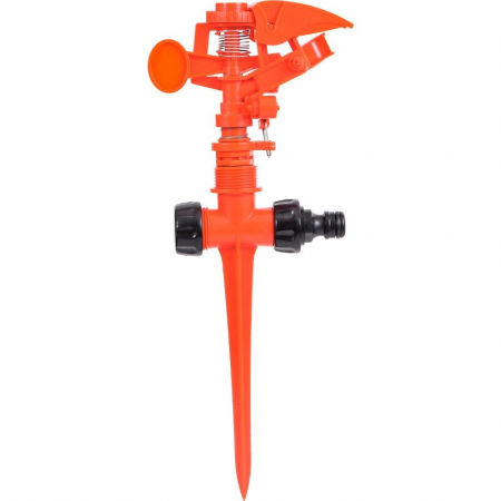 Импульсный распылитель используется для орошения больших секторов площадей. Возможность регулировки угла распыла обеспечивает качественный полив под деревьями и кустами.