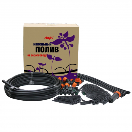 Описание: комплект для капельного полива "Жук" от водопровода на 30 растений ( 1 грядка по 6 метров) в коробке.