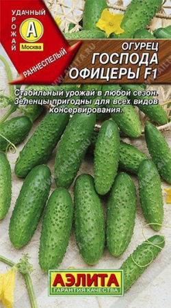 Скороспелый пчелоопыляемый гибрид для открытого грунта. Вступает в плодоношение на 40-45 день от всходов. Формирует растения преимущественно женского типа цветения, с тенденцией к букетному заложению завязей – до 3 шт. Характеризуется стабильной урожайностью в любой сезон – от 5-6кг/м2в неблагоприятное лето до 11-12 кг/м2в «огуречный» год. Зеленцы бугорчатые (бугорки средней величины), темно-зеленые, длиной 8-10 см, массой 90-120 г. Не горчат. Плотные, хрустящие, ароматные огурчики с великолепным вкусом хороши для свежего потребления и пригодны для всех видов консервирования.